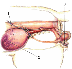 - vessie gonflée par l'obstruction due au bouchon urêtral